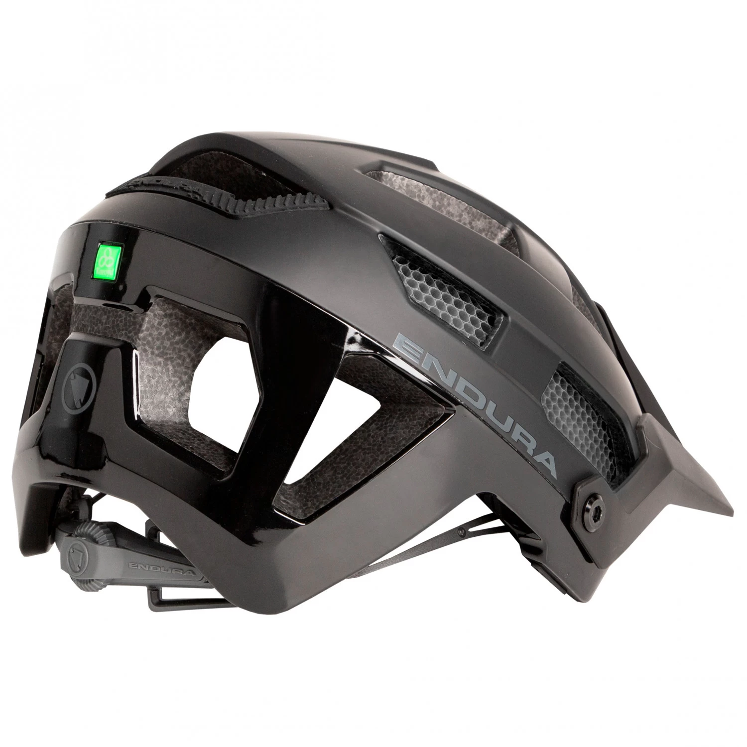 The Singletrack Helmet from Endura boasts the Koroyd technology. Critical areas are lined with the honeycomb material to absorb the energy in the event of a fall. In addition, the helmet features a one-hand micro-adjustment system that ensure a good fit. It also has a quick-drying, removable padding and a strap at the back to hold your glasses. According to Endura, the visor is adjustable and removable.